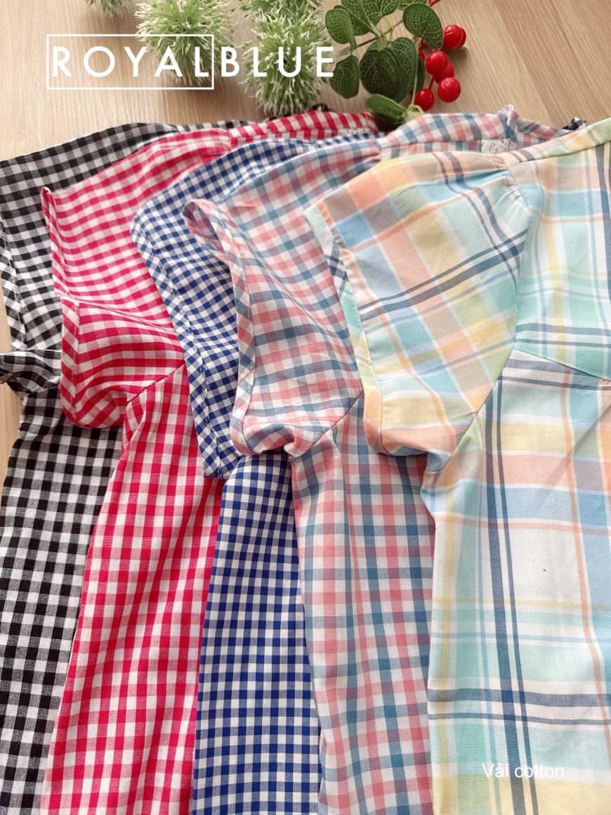 Bộ dài cotton viền ren xinh, karo đỏ