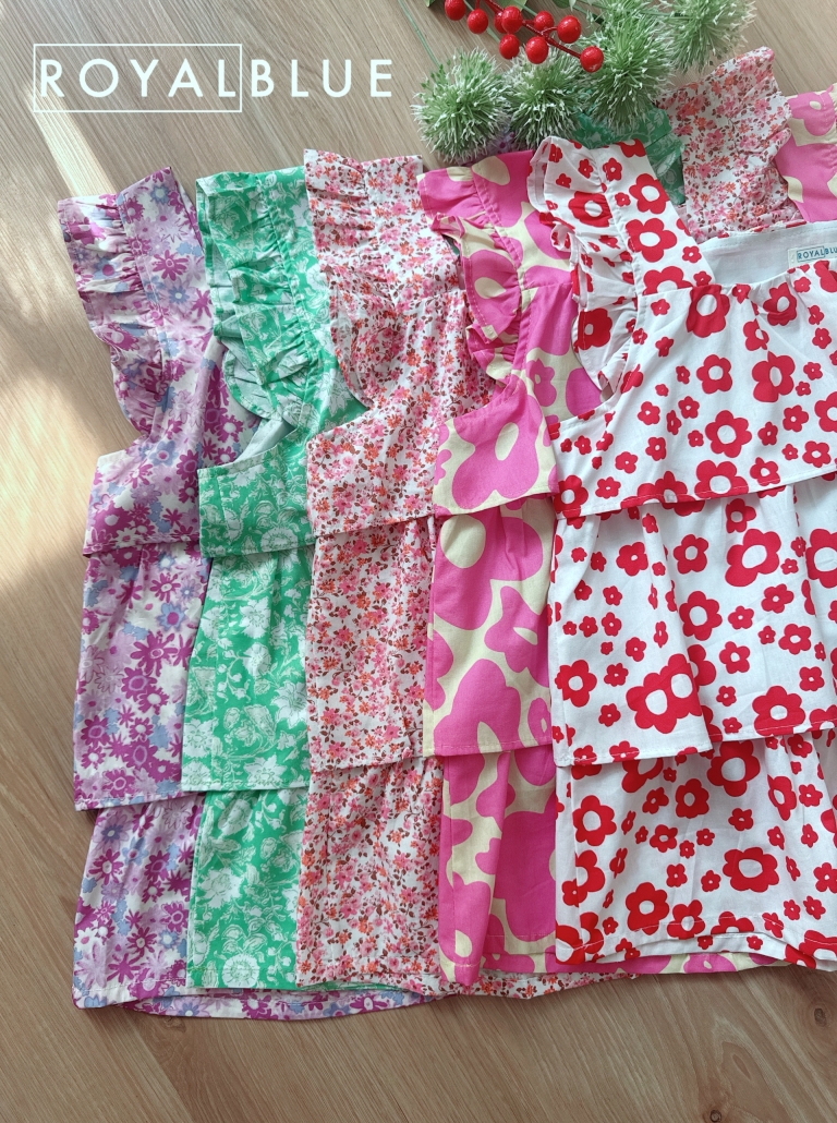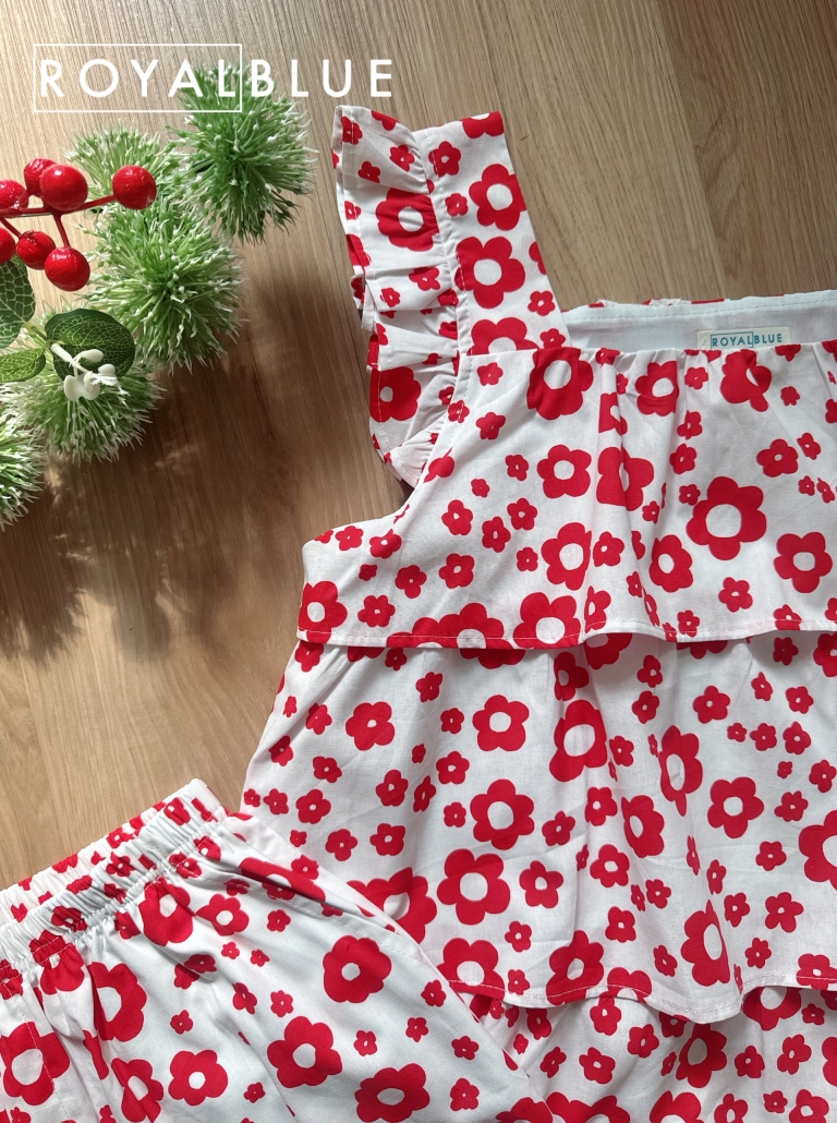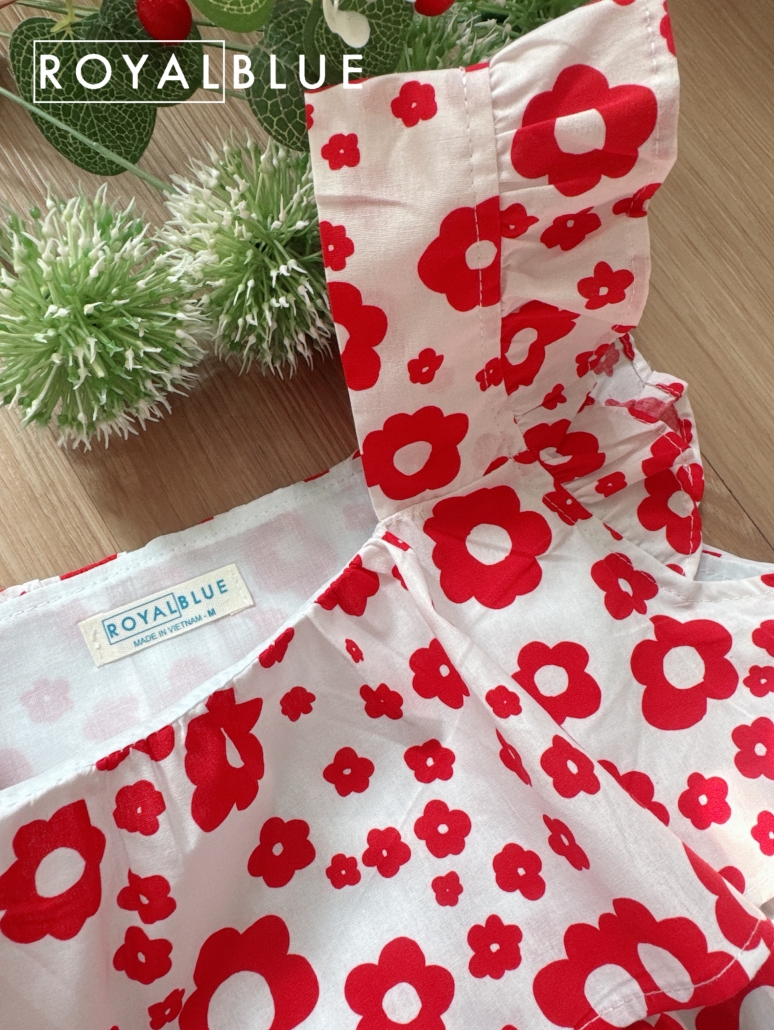 Bộ lỡ sát tay cotton bèo tầng xinh,hoa đỏ