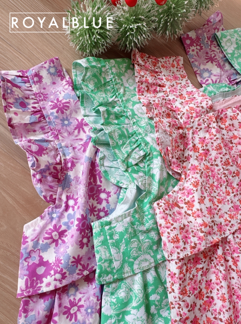 Bộ lỡ sát tay cotton bèo tầng xinh, xanh hoa