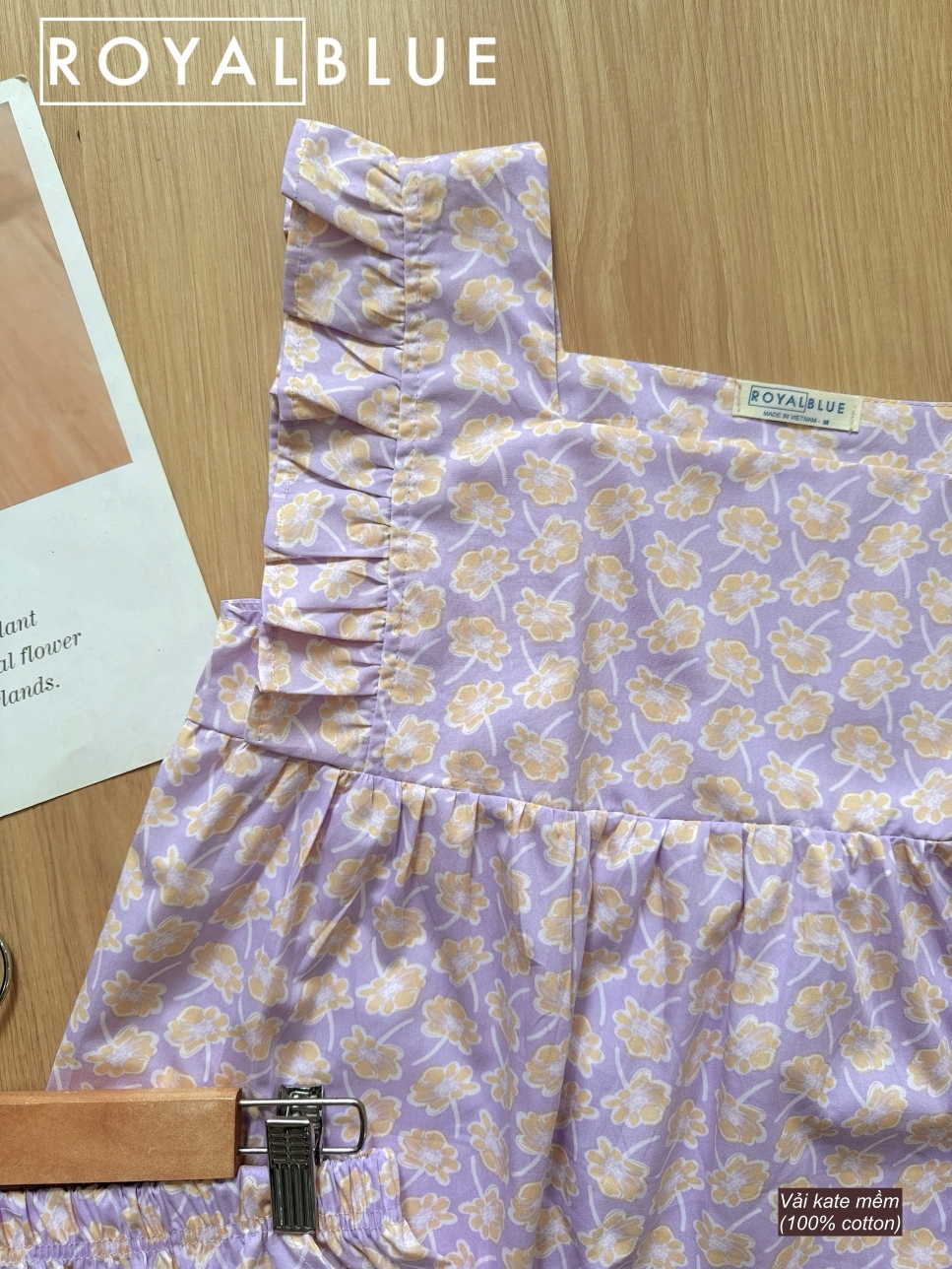 Đùi cánh tiên cổ vuông coton, hoa tím
