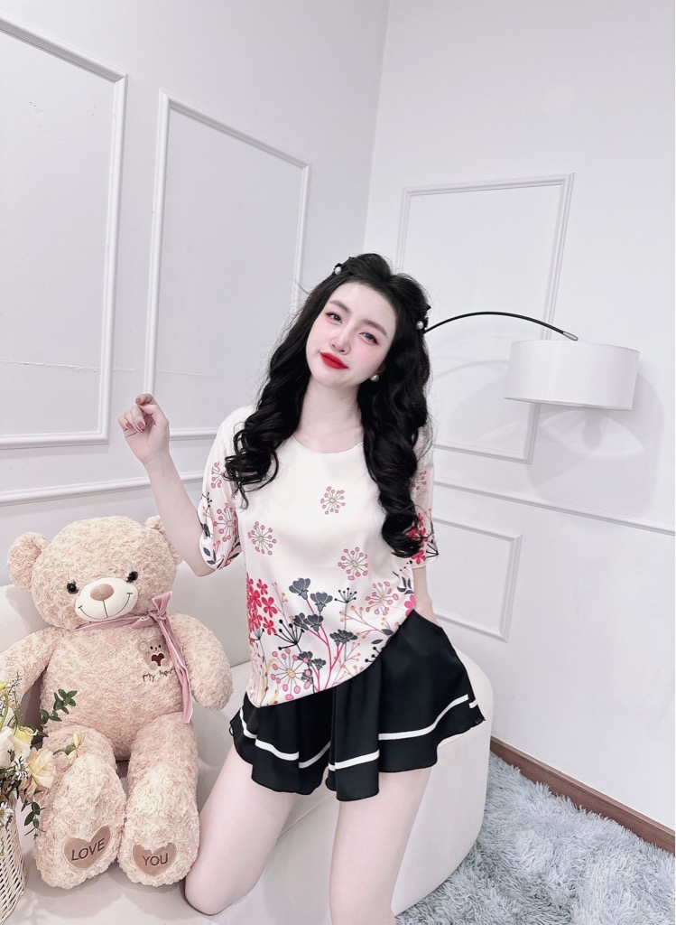 Đùi tay phồng kate boi, vải mỏng, bông hoa