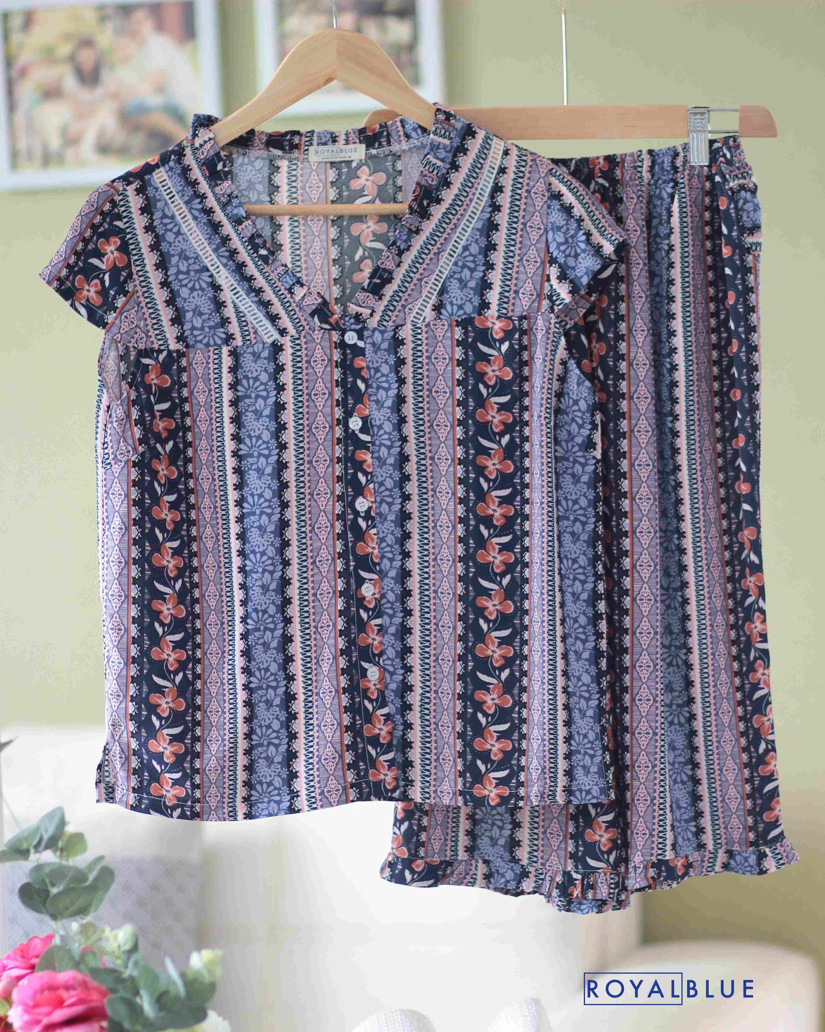 Đồ bộ lửng cổ tim thổ cẩm xanh