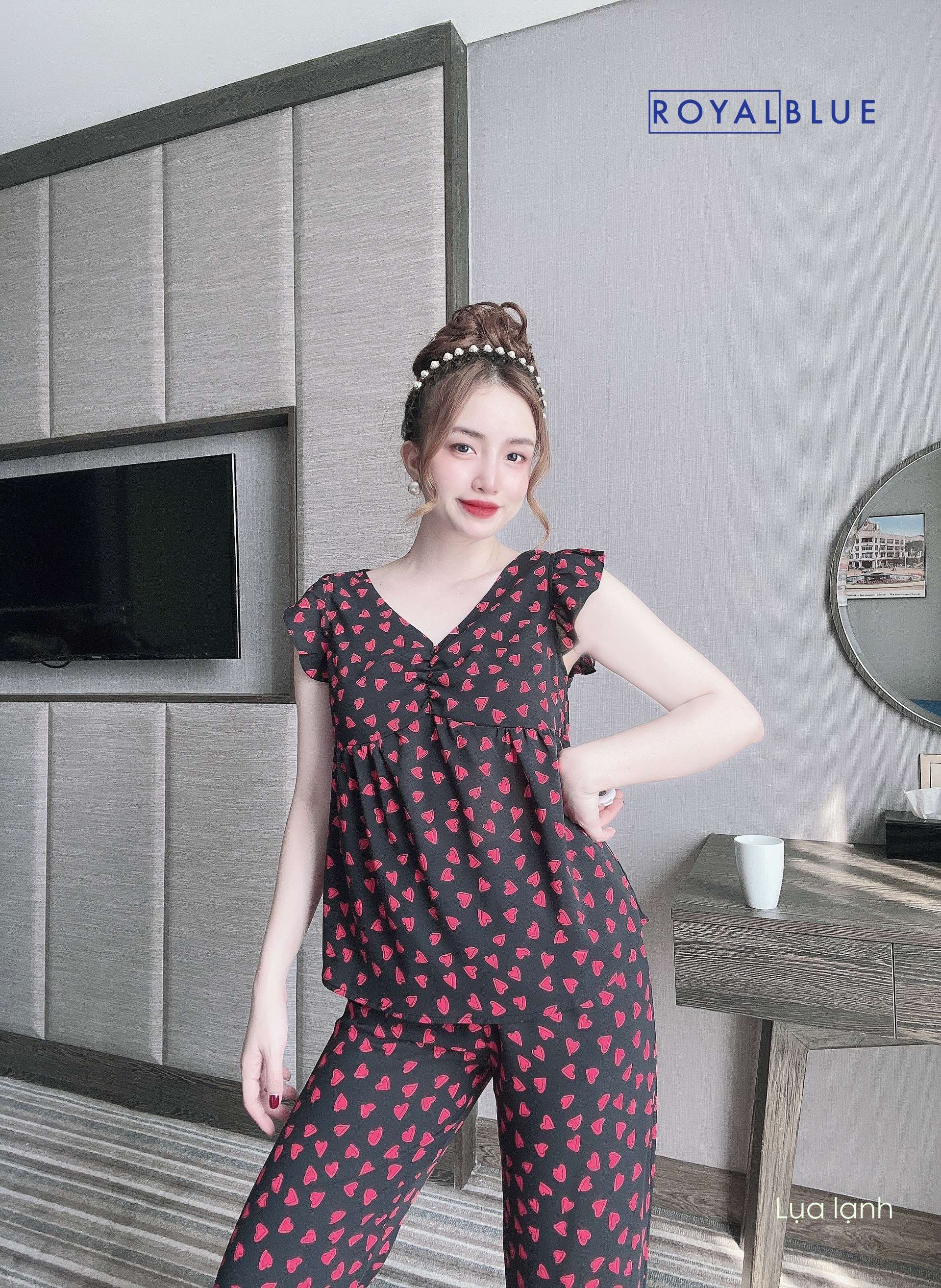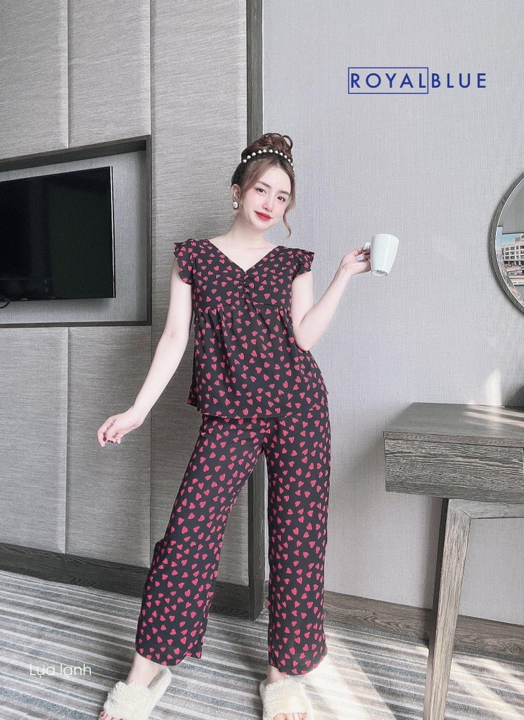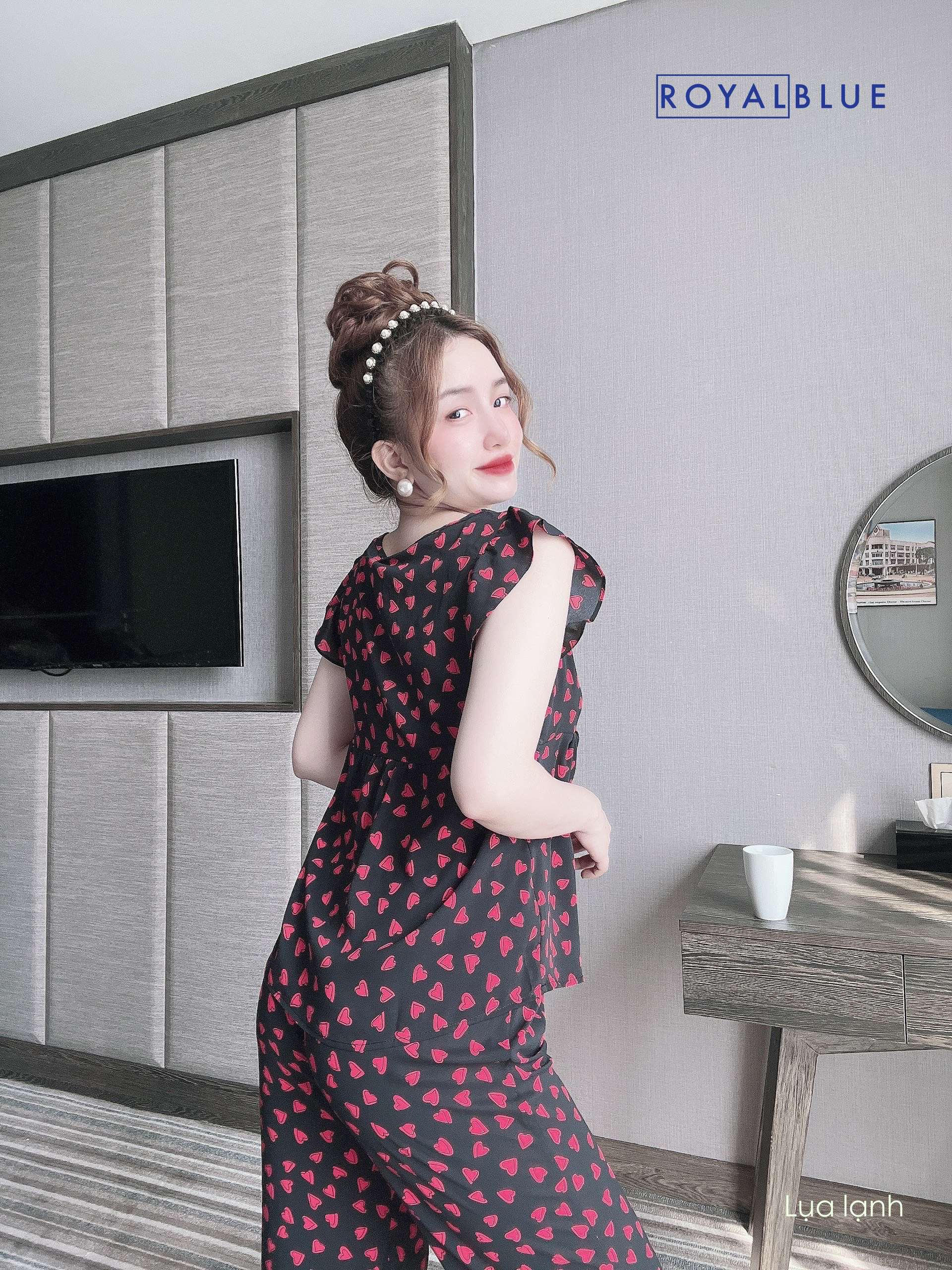 Bộ ngố mặc nhà cổ V vải lụa mềm nhẹ, rất mát.