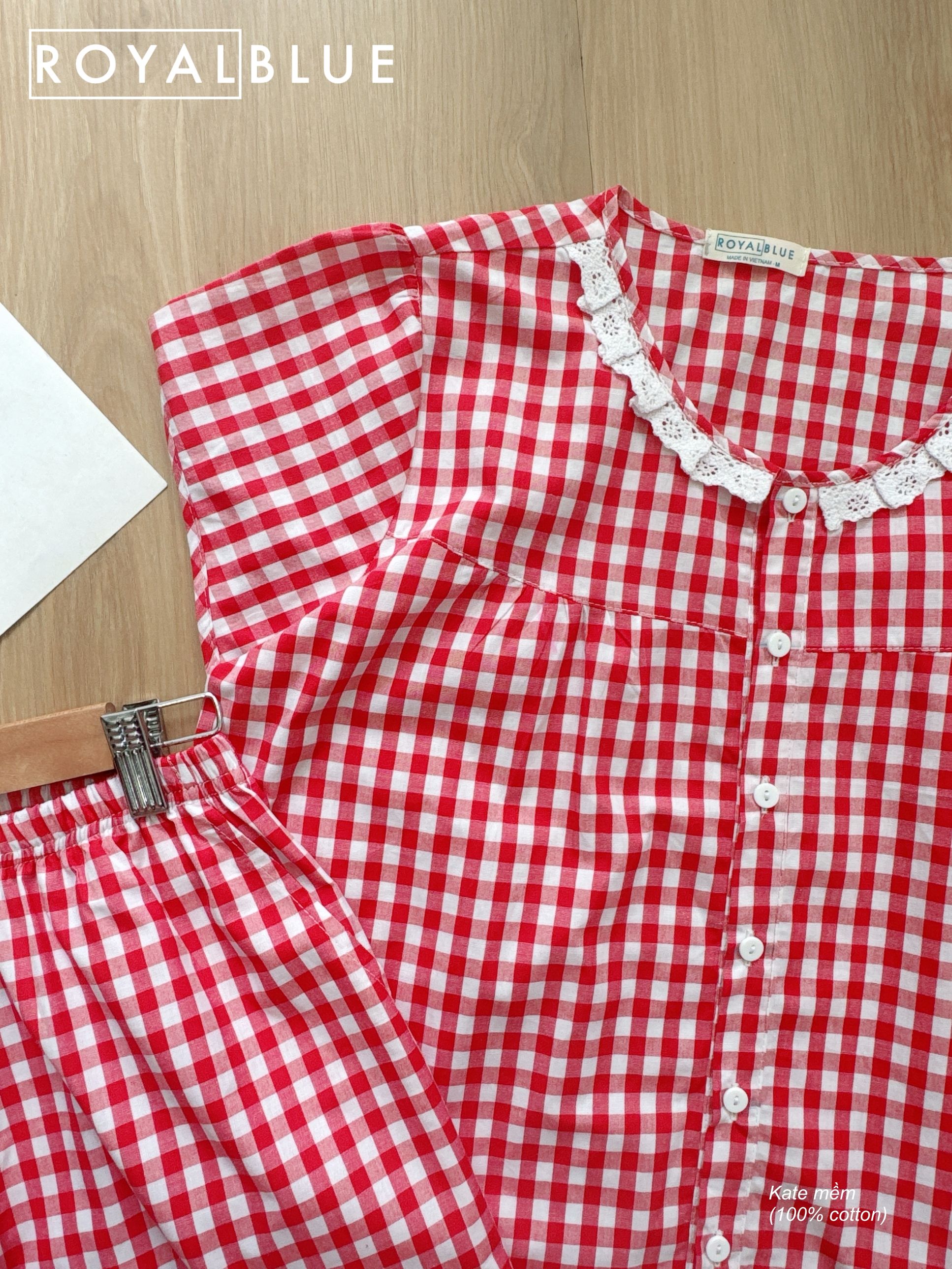 Ngố kate viền ren xinh, Karo đỏ